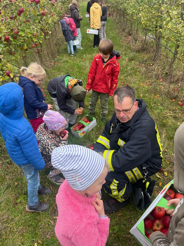 Etwa 30 strahlende Kindergesichter aus Möhler und Herzebrock waren am 25.10.2025 zu Gast in unserer Apfelplantage.